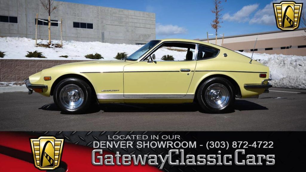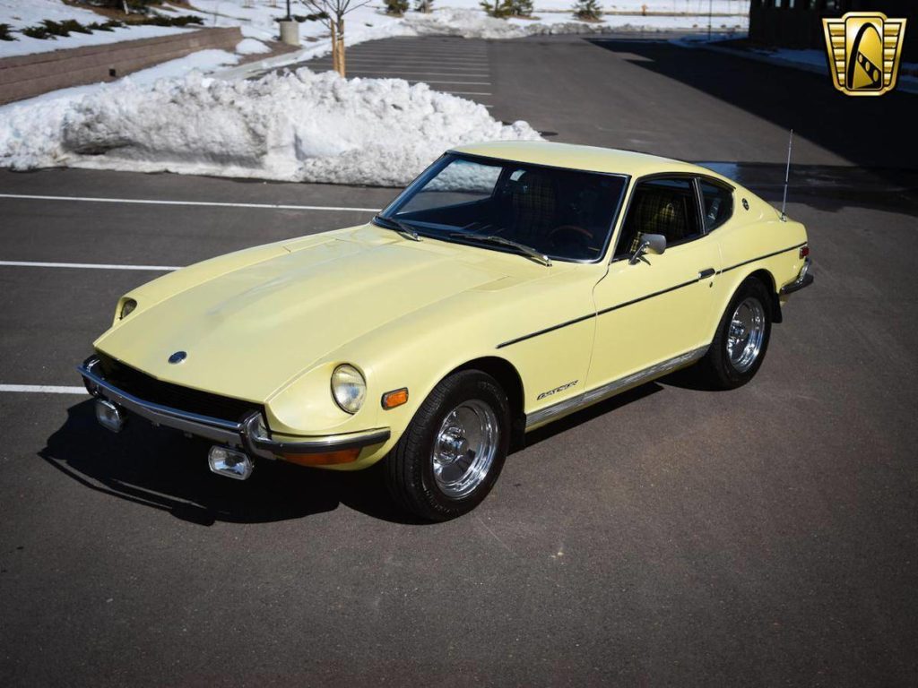 On its launch the 240Z was a spectacular car that could easily compete with the best cars from the American and European market. It was a performance car with a sexy look and at a price of only $3500 that helped the maker to sell over 50000 in 1972. This 2-owner Z car has been repainted in a very shiny mother of pearl yellow. It is powered by L24 Inline-6 cylinder engine with twin SU carburetors that produce 151 hp straight from the factory. The exterior styling is inspired by the Ferrari GTO proportions and the Jaguar E-type nose. Nissan also added delicate bumper and framed by headlights recessed into ice scoop buckets mounted in the front fenders. It has a weight of 2320 lbs. The interior features a very cool and unique yellow plaid upholstered high-back bucket seats and instrumentation cluster deeply tunneled into the dash. It sits a set of aftermarket chrome wheels contrasting the pearlescent paint nicely. This car looks great performs well and is looking for a new garage to sit in! This vehicle is located in our Denver showroom. You can view this 1972 Nissan Datsun 240Z in greater detail including HD pictures and an HD video of it running and driving at Gatewayclassiccars.com. If you are interested in purchasing this vehicle or have more questions regarding it please call us at (303) 872-4722 or email us at [Email Dealer]